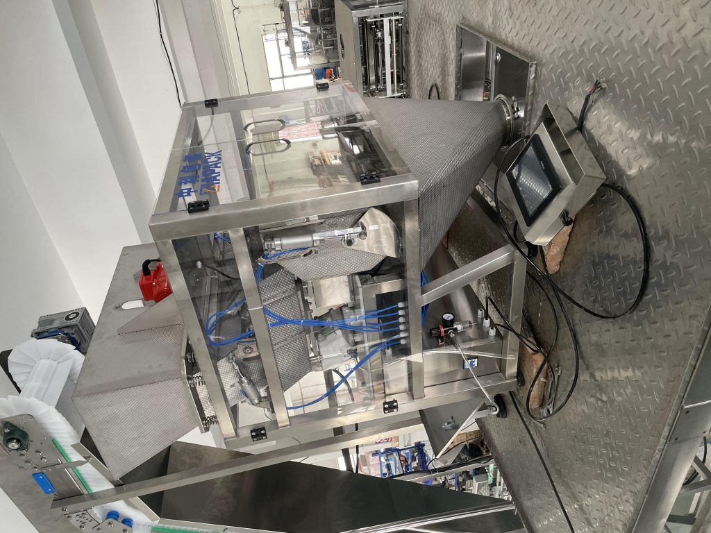 මෙම ඒකක යන්ත්රය අයිස් කැට සහ අයිස් නල මෘදු ප්ලාස්ටික් බෑගයකට ඇසුරුම් කිරීම සඳහා විශේෂ සැලසුමකි. අයිස් කැට පෝෂණය, බර, පිරවීම, ස්වයංක්රීය බෑගය සෑදීමේ මුද්රා තැබීම සහ සම්පූර්ණ බෑග් ප්රතිදානය යන ක්රියාකාරකම් සමඟින්. ප්රධාන යන්ත්රයට බෑග් ගණන් කිරීම සහ දින කේතනය කිරීමේ කාර්යය ඇත. .