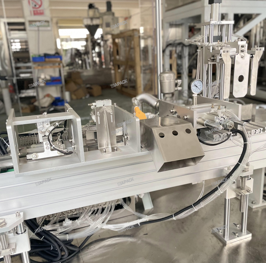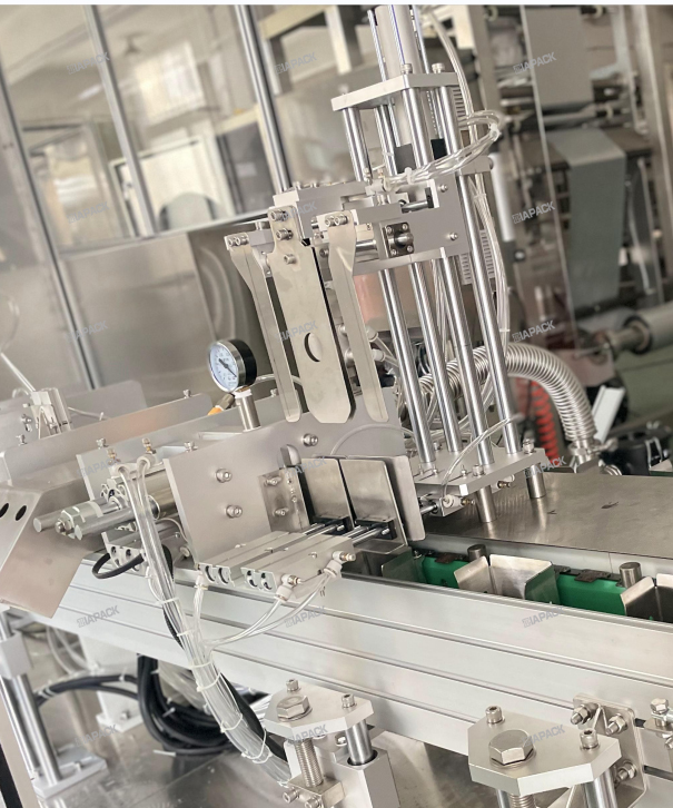 මෙම යන්ත්රය ඉහළ ලේබල් කිරීම සහිත ගුසෙට් බෑගය සෑදීම සඳහා විශේෂ සැලසුමකි. නිෂ්පාදන සහිත සම්පූර්ණ බෑගය මෙම යන්ත්රයට වැටුණු පසු.මෙම යන්ත්රය බෑගය රැගෙන, වන් ටයිම් බෑග් කට නැමීම හරහා ගොස් ලේබලය ඇලවීම සිදු කරයි. SUS304 .පීඑල්සී සහ ස්පර්ශ තිරය Siemens සන්නාමය විසින් භාවිතා කරයි .සහ වායුමය කොටස් SMC සන්නාමය භාවිතා කරයි .ප්රධාන විදුලි උපාංග Omron සහ Schneider සන්නාමය භාවිතා කරයි.මෙම යන්ත්රය ස්වයංක්රීය ඇසුරුම් යන්ත්රය සමඟ ක්රියාකරමින් නිමි බෑග් ටොප් ලේබල් කිරීම වෙත ළඟා විය හැක. ලේබලය වෙන් කර ඇත ,ලේබලය යැවීම .ලේබල් අනාවරකය සහ ලේබලය එබීම .